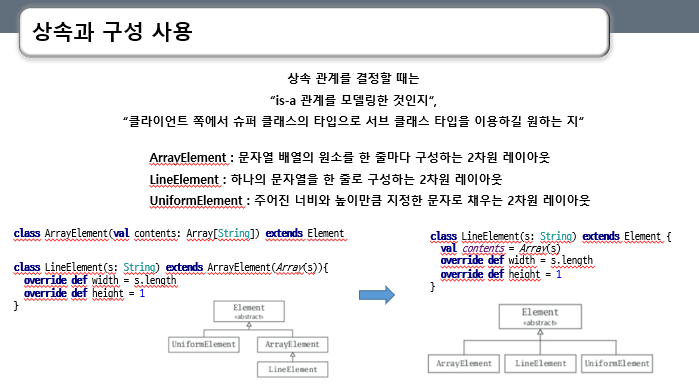 UniformElement는 Element이다.와 ArrayElement는 Element 이다. 라는 의미는 맞기 때문에 Element와 UniformElement, ArrayElement 관계는 상속 관계입니다.