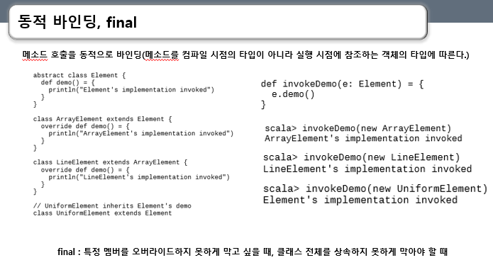 invokeDemo 에서 Element 타입의 demo() 메소드를 호출하는 데 호출 결과 값을 보면 demo 메소드가 변수의 타입인 Element를 따라가지 않고