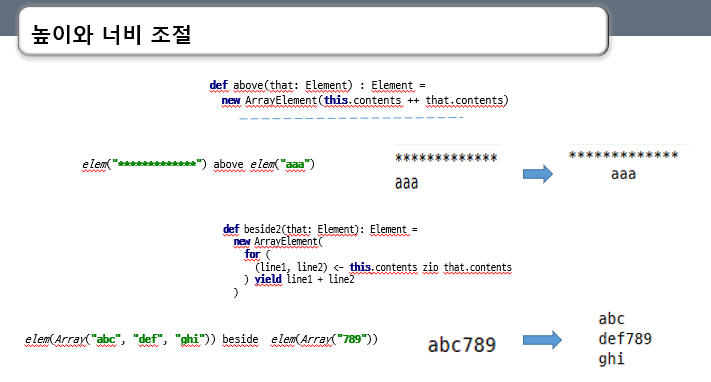 세로로 결합한 요소를 구현하는 방식은 contents 배열에 문자열을 추가하여 구현합니다. 그러면 객체를 print 할 때 하나의 문자열 출력하고 엔터를 치는 방식으로 세로로 결합된 요소를 만들게 됩니다.