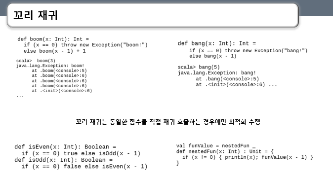 스칼라는 기본적으로 복잡한 함수를 다수의 작은 함수로 나눠야 하는 설계 원칙을 가지고 있습니다. 그래서 도우미 함수가 다수 존재합니다.